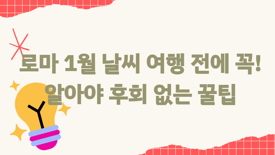 오늘은 로마의 1월 날씨에 대해 자세히 알아보고, 여행 준비에 도움이 될 만한 꿀팁들을 알려드릴게요!